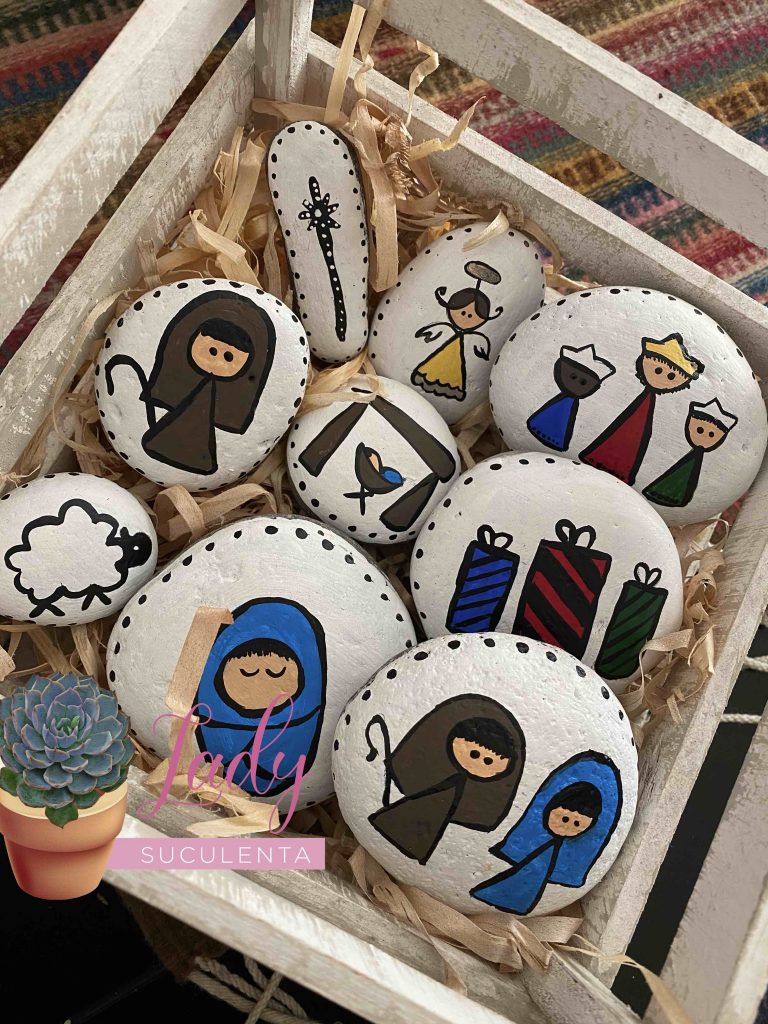 Para la temporada de diciembre además de las suculentas también ha desarrollado nacimientos de piedra pintados a mano, que son perfectos para decorar el hogar o regalos este fin de año.