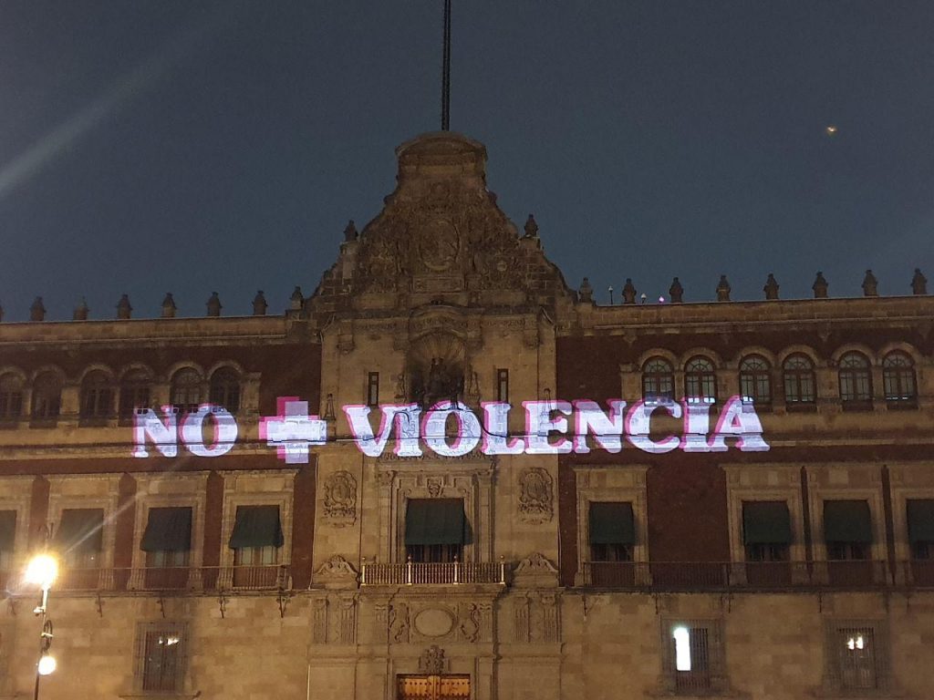 Las pintas que iluminan Palacio Nacional “AMLO, date cuenta”, “Un violador será gobernador”, “No + violencia” y “Somos las mujeres, somos una voz colectiva”, exigen al presidente Andrés Manuel López Obrador rompa el pacto patriarcal de llevar a un violador al poder y exigen que deje de descalificar e ignorar las urgencias de las más diversas luchas de las mujeres en México. Descalificar la violencia en nuestra contra la normaliza, señala un comunicado de prensa enviado a medios sobre los hechos sucedidos la semana pasada en el marco de la conmemoración del día internacional de la Mujer.