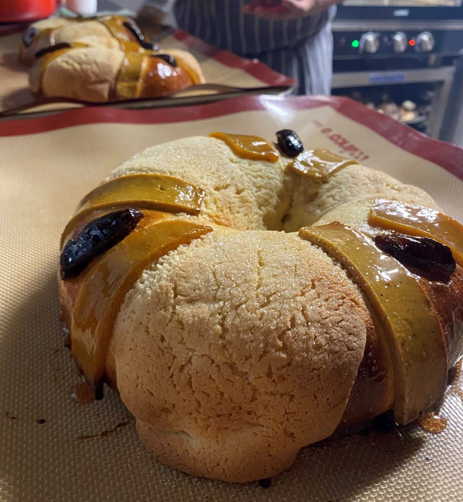 Migrante elaboró la tradicional Rosca de Reyes con masa madre joven y la cerveza de Yeccan llamada “Segunda Ola”, estilo Tart Ale de frambuesa y jamaica, la cual se barniza con una reducción de la misma cerveza.